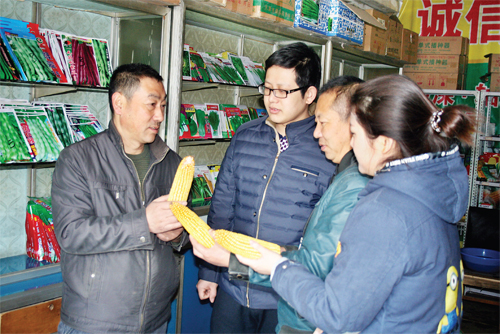 2月13日,原平市宇峰種業(yè)的農(nóng)技人員正在為前來購買種子的人們講解各種種子對土壤的適應性和如何提高種植產(chǎn)量。目前該市農(nóng)民們已經(jīng)開始購買化肥、種子、農(nóng)機具等,為今年春耕做準備。(趙春曉 攝)