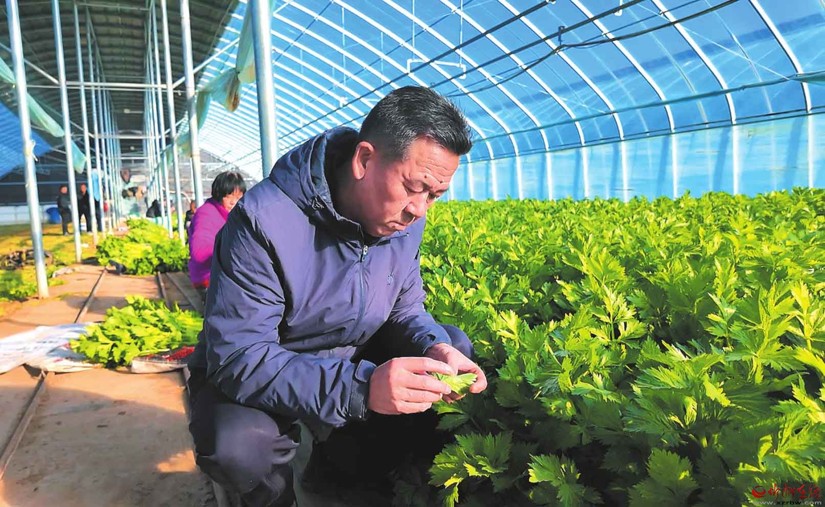 近日,忻府區(qū)農(nóng)業(yè)農(nóng)村局組織農(nóng)技專家團(tuán)隊(duì)深入忻口鎮(zhèn)高標(biāo)準(zhǔn)蔬菜育苗基地,開(kāi)展越冬作物防寒防凍技術(shù)指導(dǎo)。圖為農(nóng)技專家查看芹菜生長(zhǎng)狀態(tài)。(趙曼君攝)