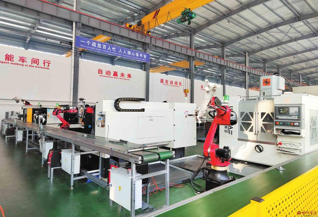 定襄縣高新技術(shù)創(chuàng)新服務(wù)中心小法蘭智能化生產(chǎn)線,是企業(yè)與高校合作研發(fā)的智能化生產(chǎn)成果轉(zhuǎn)化項目。該生產(chǎn)線可實現(xiàn)從原材料上料、加工到成品下料的全流程無人化操作,與過去法蘭生產(chǎn)線相比較,加工效率提升了約30%,產(chǎn)品生產(chǎn)成本整體降低了30%。(張玉虎 攝)