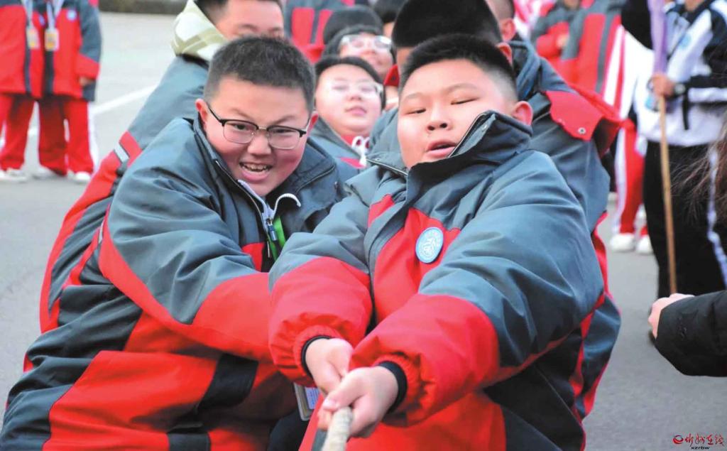 近日,忻州市北方初級(jí)中學(xué)舉行了冬季拔河比賽。比賽哨聲一響,賽場瞬間沸騰,參賽隊(duì)員們緊握長繩,雙腳蹬地,身體后傾;老師們化身為啦啦隊(duì)長,揮動(dòng)雙臂,聲嘶力竭地為隊(duì)員們指揮節(jié)奏;各班同學(xué)則自發(fā)組成陣容強(qiáng)大后援團(tuán),將現(xiàn)場氛圍一次次推向高潮。(記者馮偉倫攝)