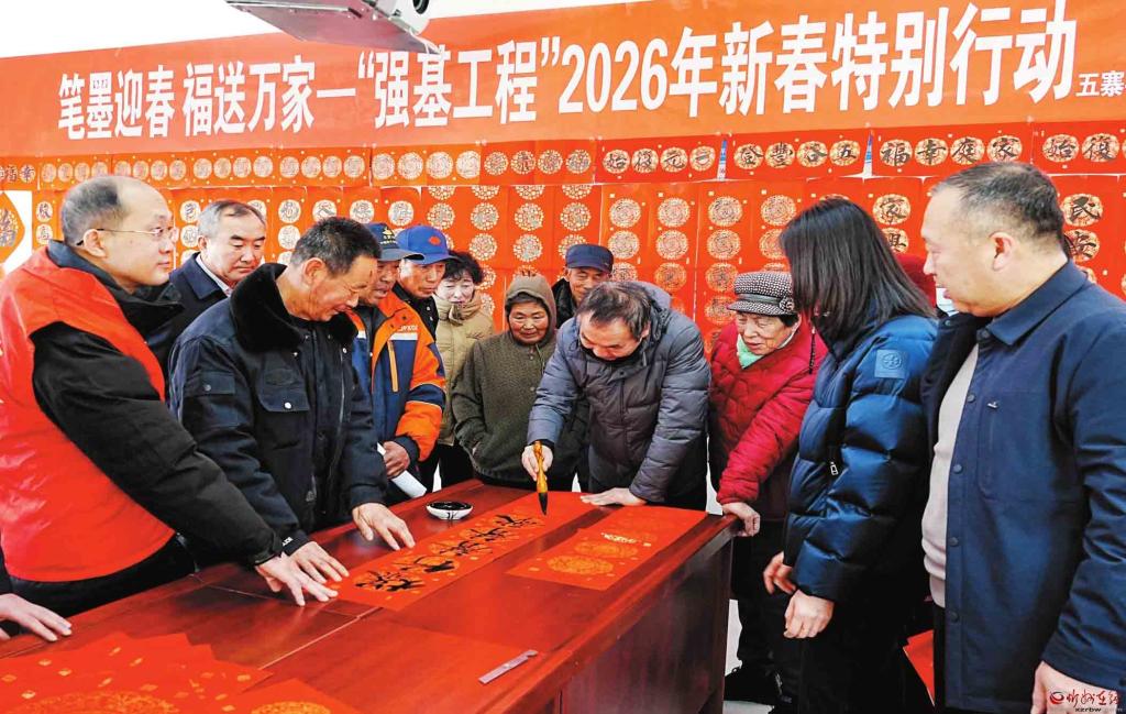 新春將至,年味漸濃。近日,由五寨縣文聯(lián)聯(lián)合縣總工會、團(tuán)縣委舉辦的“筆墨迎春福送萬家”送春聯(lián)活動走進(jìn)李家坪鄉(xiāng)李家坪、張家坪村,以筆墨為媒傳遞新春祝福,用文化服務(wù)筑牢基層精神根基,讓“強(qiáng)基工程”的溫暖觸角延伸至鄉(xiāng)村一線。(劉篤效攝