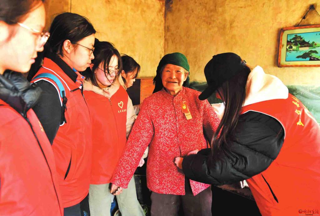 近日,五臺縣志愿者協(xié)會(huì)協(xié)同工業(yè)園社區(qū)志愿者和大學(xué)生志愿者,帶著精心準(zhǔn)備的年貨,走進(jìn)溝南鄉(xiāng)翟子溝村、東雷鄉(xiāng)東山底村、陳家莊鄉(xiāng)王城村等地,看望慰問十二戶孤寡老人和困難家庭,向他們送上社會(huì)各界的關(guān)懷和新春的溫暖祝福。圖為志愿者為腿腳不便的高齡老人試穿新衣服。(盧俊華 攝)