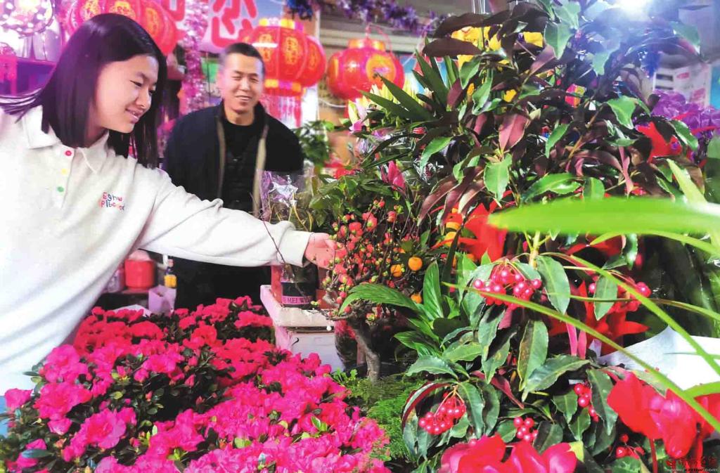 2月12日,市民在忻州城區(qū)長征后街花店選購鮮花,為即將到來的馬年春節(jié)營造喜慶熱鬧的氛圍。(記者宮清華攝