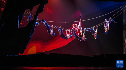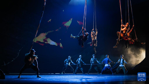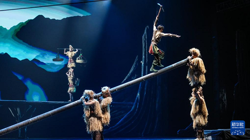 10月9日,演員在表演雜技劇《脊梁》。(新華社記者 陶亮 攝)