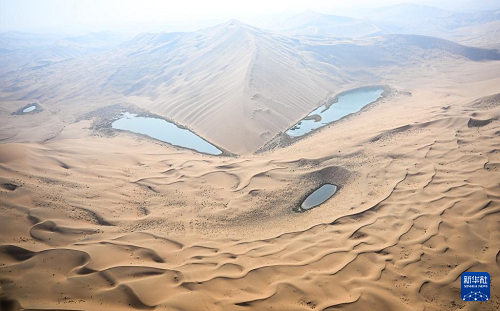 秋日,位于內蒙古阿拉善盟阿拉善右旗的世界遺產巴丹吉林沙漠—沙山湖泊群褪去炙熱,綿延的沙丘披上柔和金光,與點綴其間的湖泊相映成趣,勾勒出一幅靜謐而壯麗的自然畫卷。