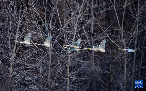 12月20日在河南省三門峽市天鵝湖國家城市濕地公園拍攝的白天鵝。(新華社發(fā) 趙永濤 攝)