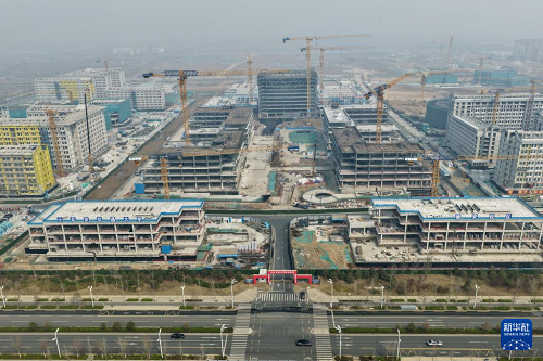 北京交通大學雄安校區(qū)建設現(xiàn)場(3月25日攝,無人機照片)。(新華社記者 牟宇 攝)
