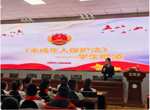 宣講活動分專題進行。在《未成年人保護法》《預防未成年人犯罪法》專題課堂上,檢察官解讀了兩部法律的核心內容,引導學生樹立尊法、學法、守法、用法的意識。在預防學生欺凌專題宣講中,檢察官結合典型案例,深入講解校園欺凌的表現(xiàn)形式、危害后果及法律責任,并詳細講解遭遇欺凌時的正確應對方式與求助途徑,引導學生增強自我保護意識,學會運用法律武器維護自身合法權益。