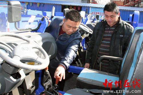 2月20日,原平市子干村的農(nóng)民正在農(nóng)機銷售處挑選時風(fēng)農(nóng)用車,春節(jié)過后,該市農(nóng)機市場紅紅火火,農(nóng)民們早備耕,為今年的春耕生產(chǎn)打下良好基礎(chǔ)。(趙春曉 攝)