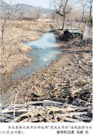 而在離城區(qū)稍遠(yuǎn)的農(nóng)村,部分不法村鎮(zhèn)小作坊等污水違規(guī)排放時有發(fā)生。檢查組發(fā)現(xiàn),長江中游某省一座沿江城市所轄村莊里,一磷礦尾礦庫的磷渣常年堆積,一下雨,就形成一條白色的“污水溝”。檢查組在華北某特大城市北部遠(yuǎn)郊一村中實(shí)地檢查時發(fā)現(xiàn),該村“黑洗衣作坊”違規(guī)偷排污水,污染環(huán)境。