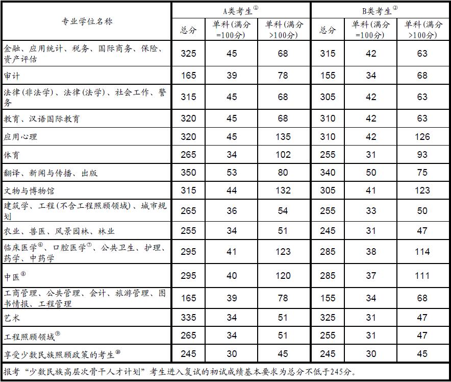 2016年全國碩士研究生招生考試考生進(jìn)入復(fù)試的初試成績(jī)基本要求(專業(yè)學(xué)位類)