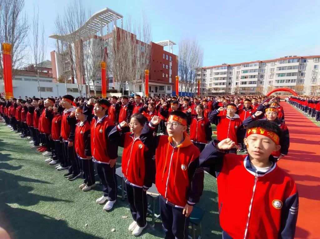 趙俊瑞校長表示,在去年學校中考取得了優(yōu)秀的成績,號召全體師生發(fā)揚釘子精神,奮斗一百天,決勝一百天,勉勵在場同學們堅定決心,不畏艱難,堅持到底,激勵全體師生團結(jié)一致,開拓創(chuàng)新,努力奮斗,以科學的方法和良好的心態(tài)決勝中考戰(zhàn)場?!褒埿旋擙搯⑿鲁?,前程朤朤向未來”,攻堅克難,千錘百煉。風雨兼程,無畏前行,在高質(zhì)量發(fā)展的道路上奮勇前進。