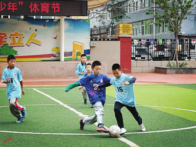 當天下午,太原市雙東小學的大課間鈴聲準時響起——“走,練射門去!”六年級學生張浩宇一把抓起足球,和隊友們直奔操場。上、下午各30分鐘的陽光大課間正有序開展,韻律操、武術操的音樂響徹校園。