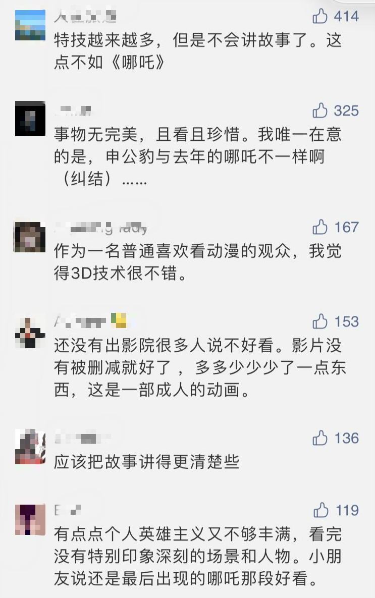 中新經(jīng)緯記者注意到,《姜子牙》上映后,網(wǎng)絡(luò)出現(xiàn)了不同聲音,有網(wǎng)友表示“特技越來(lái)越多,但是不會(huì)講故事了”。也有網(wǎng)友力挺:“事物無(wú)完美,且看且珍惜”。