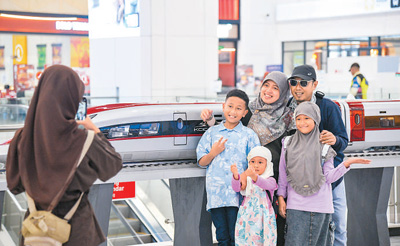 日前,在印度尼西亞雅加達(dá),乘客在雅萬(wàn)高鐵哈利姆站候車大廳與雅萬(wàn)高鐵高速動(dòng)車組模型合影。新華社記者 徐 欽攝