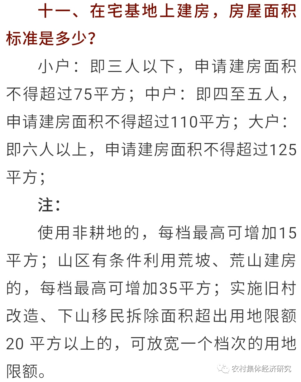 十、農(nóng)村宅基地面積標準是多少?根據(jù)《土地管理法》相關規(guī)定:農(nóng)村宅基地用地標準:占用農(nóng)用地每處不超過200平方米(0.30畝),占用建設用地和未利用地每處不超過233平方米(0.35畝)。同時《土地管理法》第62條規(guī)定:農(nóng)村村民宅基地面積不得超過省、自治區(qū)、直轄市規(guī)定的標準。也就是說農(nóng)村宅基地按照各個省、自治區(qū)或直轄市相關的規(guī)定,全國并沒有統(tǒng)一的計算方法,因為涉及到山區(qū)、平原、草原等地理形勢的因素,每個地區(qū)的政策不同。