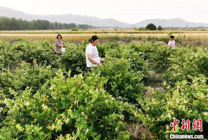 “三夏”大忙時節(jié),呂梁山脈姑射山下,山西省運城市新絳縣澤掌鎮(zhèn)喬溝頭、吳嶺莊、光村等村,千畝金銀花喜獲豐收,花農(nóng)們正采摘搶收。近年來,當?shù)匾浴盎ā睘椤懊健?,持續(xù)加大果、藥等產(chǎn)業(yè)發(fā)展,成為鄉(xiāng)村振興“新動力”。