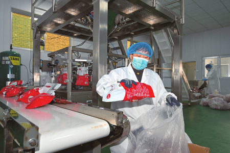 11月12日,襄遇欣安農(nóng)業(yè)發(fā)展有限公司包裝車間內(nèi),工人熟練地將凍干山楂成品送入稱重包裝機(jī)。近年來,定襄縣辛安村大力發(fā)展村辦企業(yè),為當(dāng)?shù)禺a(chǎn)業(yè)發(fā)展、鄉(xiāng)村振興注入活力。