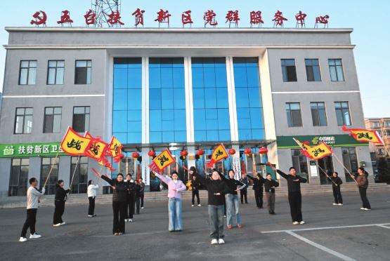 正月初八,走進(jìn)位于五臺(tái)縣東雷鄉(xiāng)的扶貧新區(qū)社區(qū),夕陽(yáng)余暉灑滿這片占地26萬(wàn)平方米的集中安置區(qū)。13棟六層居民樓內(nèi)年味濃郁,街道上紅燈籠高懸,家家戶戶門前張貼著紅彤彤的對(duì)聯(lián)。辦公樓前的廣場(chǎng)上鼓樂(lè)悠揚(yáng)、彩旗飄飄,由社區(qū)牽頭、居民自發(fā)參與的秧歌隊(duì)正加緊排練,準(zhǔn)備參加該縣元宵節(jié)文藝匯演。圍觀居民的歡聲笑語(yǔ)與參與者的歡快舞姿,勾勒出一幅溫馨熱鬧的新春畫(huà)卷。