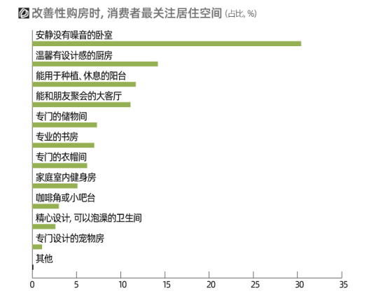 《報告》發(fā)現(xiàn):消費者在住房消費領域需求變化呈現(xiàn)出“在居住空間方面,追求個性化、審美化、輕奢化等”;“在居住生活品質方面,需求從房屋本身向社區(qū)配套、鄰里關系等外部延展”等特點。