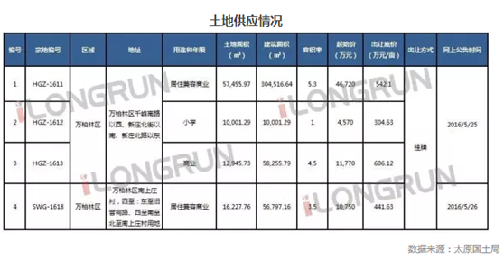 土地供應: 2016年5月第四周(5.23—5.29),本周有四宗土地供應。