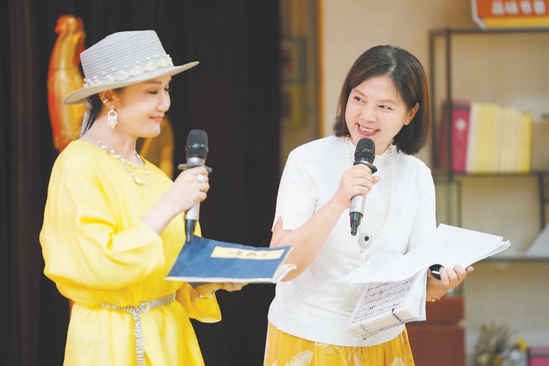 87版《紅樓夢(mèng)》襲人扮演者袁玫(右)與妙玉扮演者姬玉誦讀“讀西廂”。北京日?qǐng)?bào)記者 方非攝