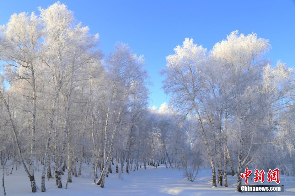 連日來,新疆阿勒泰地區(qū)遭遇十年來罕見強降雪,雪后初霽,氣溫漸降。1月4日,受超低溫天氣的影響,阿勒泰哈巴河白樺林出現(xiàn)大面積霜掛美景,晶瑩剔透,潔白無瑕,銀裝素裹,成為一道道美麗的風(fēng)景線。 謝師民 攝