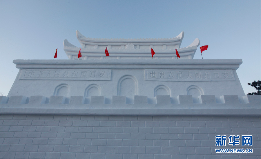 | 長春南湖公園打造雪雕版“天安門城樓” |
