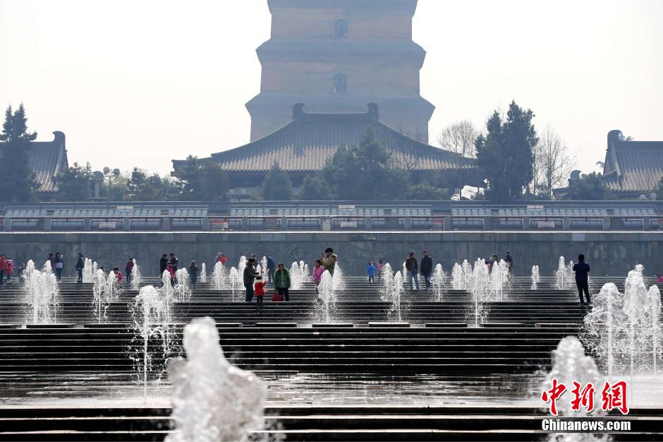 近日,大雁塔噴泉在音樂和噴泉形式上進行了改版,并增設收費觀景臺。此舉引發(fā)民眾熱議,認為景區(qū)占用觀看噴泉最有利的位置設置座椅,屬于變相收費,并且一場噴泉表演只有20分鐘,收費之舉過于“小家子氣”。 張遠 攝