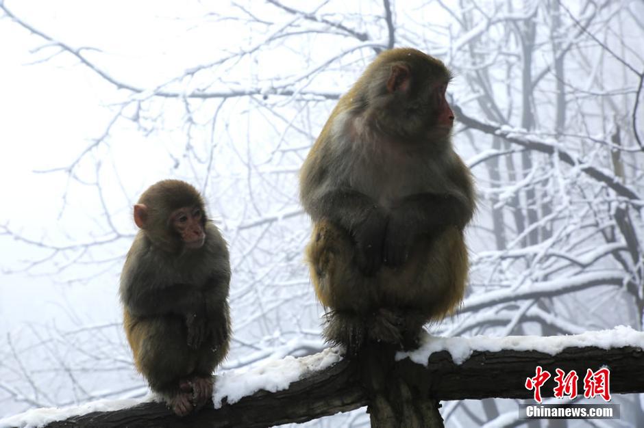 2月22日正值元宵佳節(jié),湖南張家界核心景區(qū)武陵源喜降春雪。在黃石寨景區(qū),成群的野生獼猴或在雪中追逐戲鬧,或在樹枝上攀爬跳躍,或蜷縮著身子賣萌,成為張家界武陵源的一道春季新景。吳勇兵 攝