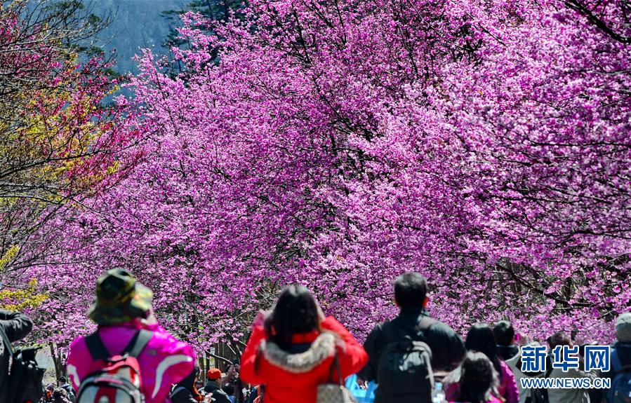 2月29日,游客在武陵農場賞花。初春的臺灣,氣溫回升,位于海拔1700多米的臺中武陵農場,漫山遍野的櫻花競相開放,美不勝收,吸引了四面八方的游客前來觀賞。 新華社記者張國俊 攝