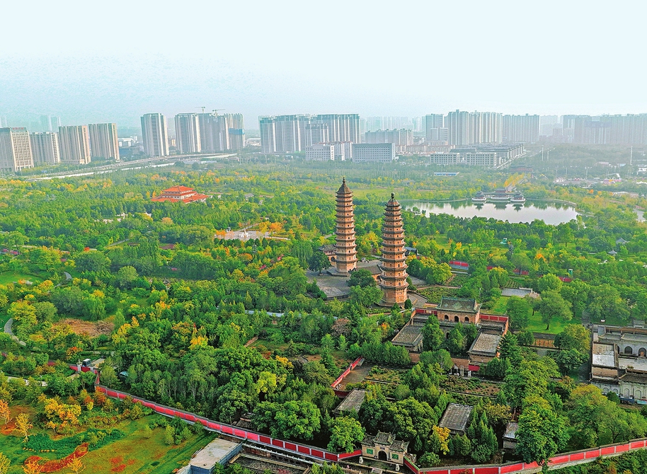 10月13日,秋日的太原市雙塔公園層林盡染,色彩斑斕。雙塔巍峨聳立,湖水澄澈如鏡,園內(nèi)步道蜿蜒,盡顯秋日的詩意與靜謐。