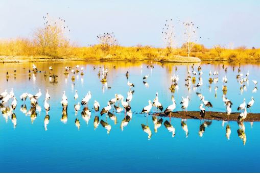 1月10日,鳥兒在江蘇興化里下河國家濕地公園內(nèi)棲息、覓食。新華社發(fā) 周社根攝