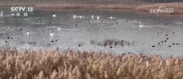 除公園外,在大天鵝頻繁活動的農田區(qū)域,當地政府也提前做好了準備。2025年,三門峽在黃河沿線共種植了1500多畝的小麥、荷花、蒲草等,為大天鵝們漫長的越冬季提供充足食源。