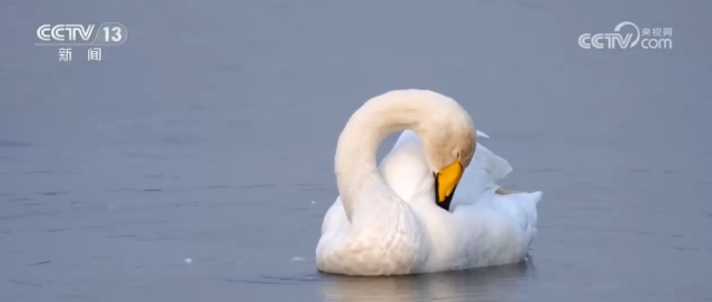 細心觀察還能發(fā)現,鳥群中少數幾只的脖頸上佩戴著藍底白字的圓環(huán)。每年越冬季,科研人員會在保證安全的前提下進行環(huán)志工作,給一些大天鵝佩戴這樣的標識并安裝信號發(fā)射器,更好地追蹤研究它們的遷徙規(guī)律。這只編號為116的大天鵝是在2022年春天做的環(huán)志,2025年已是這位“老朋友”連續(xù)第4年飛回三門峽越冬。