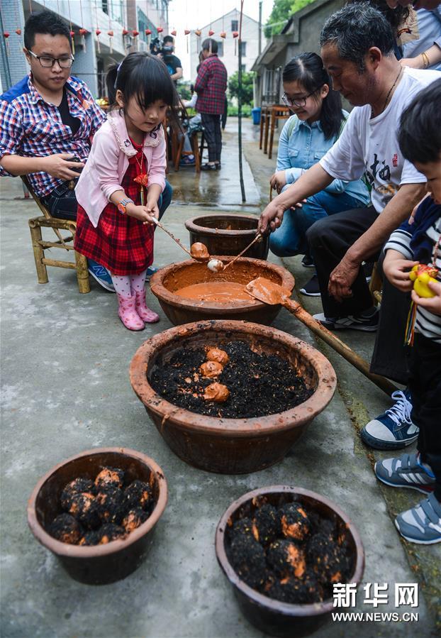 “立夏”節(jié)氣,在歷史悠久的水鄉(xiāng)古鎮(zhèn)——杭州塘棲古鎮(zhèn),村民在老刀糕餅鋪老師傅的帶領(lǐng)下,沿襲傳統(tǒng)習俗,用米粉制作“立夏狗”、搭土灶蒸“野米飯”、用草木灰做“灰鴨蛋”,以水鄉(xiāng)特有的民俗迎接初夏。新華社記者 徐昱 攝