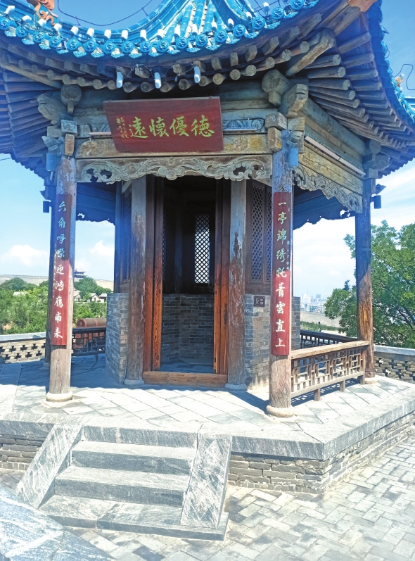登臨廖天閣,頓覺忻州天地空曠,東南西北的美景猶如一巨幅圖畫徐徐展開:東面牧馬河從西南向東北猶如一條寬闊的碧帶流過;南面的系舟山、禹王洞,掩映于層層青松之中;西面的陀羅峰,壁削兀立,重巒疊嶂,在一片片霧海中忽隱忽現(xiàn);西北面的云中河,水韻悠然,波光粼粼,野鶴飛翔,如今已成忻州地標(biāo)景區(qū)。而眼前的忻州古城,放眼望去,一排排高低相間的不同顏色的建筑和蔥綠樹木、花草相襯的美景,令人心曠神怡,體驗(yàn)著五臺(tái)山下新的自在生活。