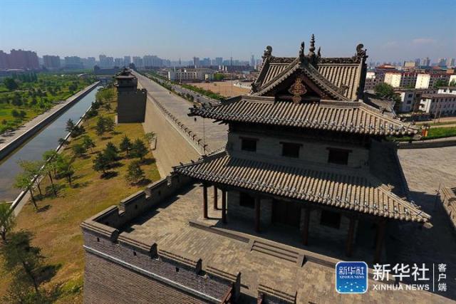 ↑2017年5月18日拍攝的大同古城城墻(無人機(jī)拍攝)。新華社記者 曹陽(yáng) 攝