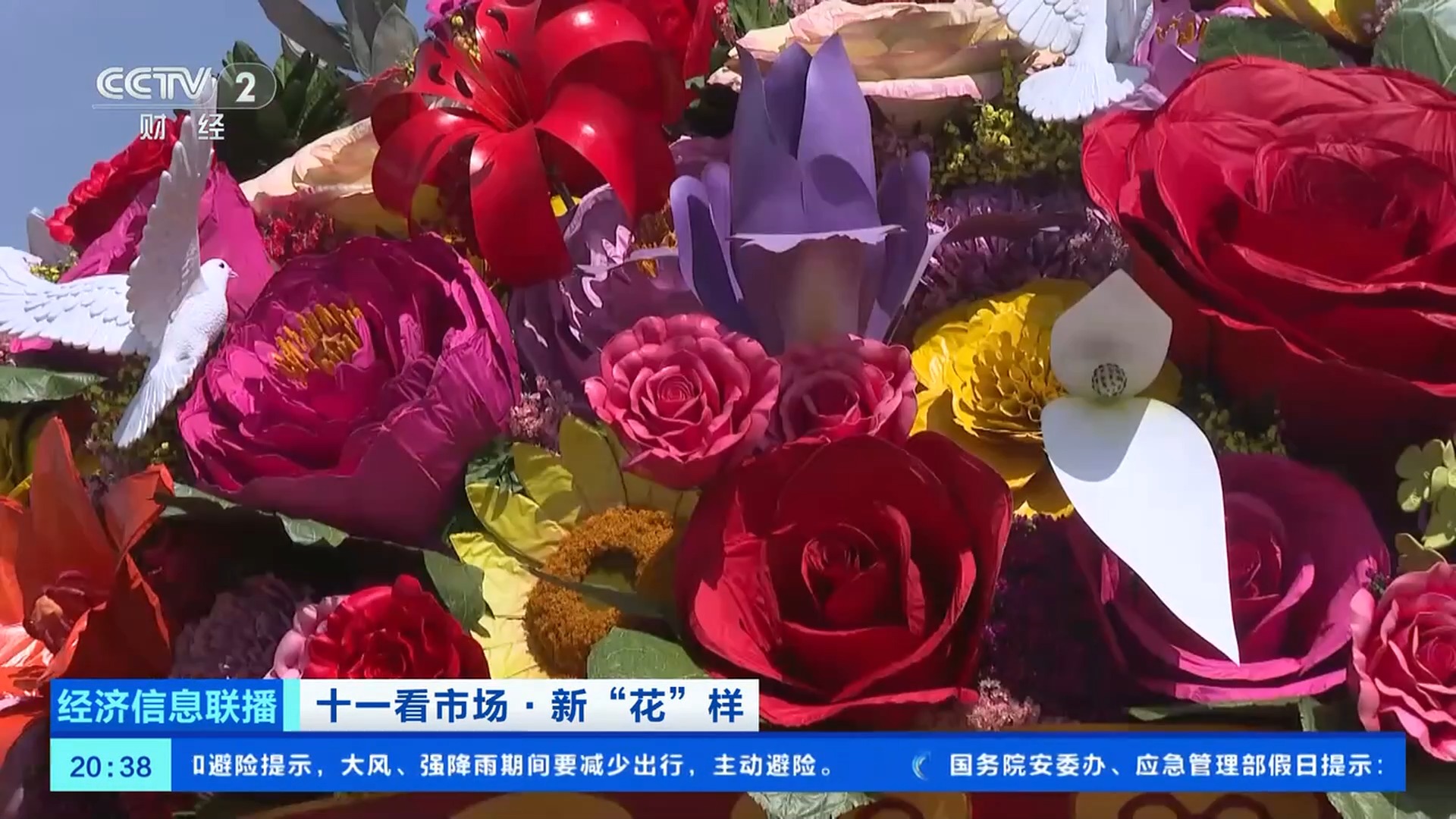 天安門花壇總工程師 張先哲:在天安門廣場我們要抗12級風(fēng),這些大型的花朵要在大風(fēng)中巋然不動(dòng),依然要保持它良好的面貌,所以我們用的大型仿真花比較多。今年,這些花朵的大小和色彩做得更加精致自如,比如鳶尾花花瓣用了彩繪,讓它的細(xì)節(jié)、紋理、顏色更加逼真。大花籃里的山丹丹、鴿子花,用的雕塑工藝,是用一些不銹鋼板敲制出來的。