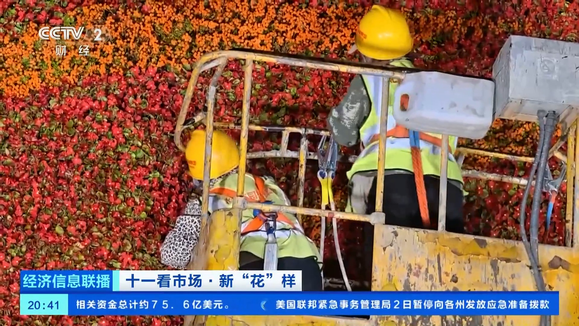 總臺央視記者 王聞聰:今年,在花壇的底部布置了一個(gè)直徑達(dá)45米的向日葵圖案,寓意朵朵葵花向太陽。這里面的花沒有那么大,但是,有兩種具有自主知識產(chǎn)權(quán)的花,分別是一串紅“奇跡”和小菊“絢秋星光”。他們是經(jīng)過了近10年時(shí)間,雜交選育得到的新優(yōu)品種,這兩種植物都是已經(jīng)能夠大面積應(yīng)用在園林綠化上的品種,在大花籃的花壇應(yīng)用總量近3萬株。