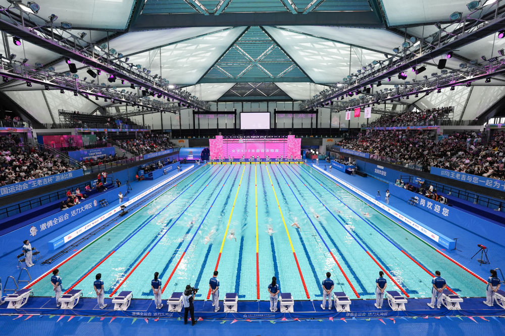 11月10日,參賽選手在女子400米自由泳預(yù)賽中。當(dāng)日,第十五屆全國運動會游泳項目在深圳拉開帷幕。新華社記者 夏一方 攝