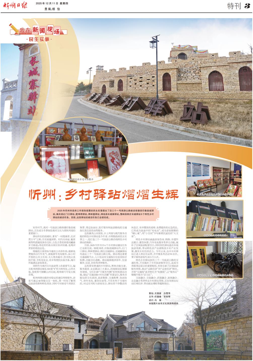 2025年忻州市政府工作報告部署的民生實(shí)事提出了沿三個一號旅游公路建設(shè)保德縣印象故城驛站,偏關(guān)縣紅門口驛站、乾坤灣驛站、樺林堡驛站,神池縣長城寨驛站,繁峙縣韓莊長城驛站6個特色鄉(xiāng)村驛站的建設(shè)任務(wù)。目前,這些驛站的建設(shè)任務(wù)已全部完成。