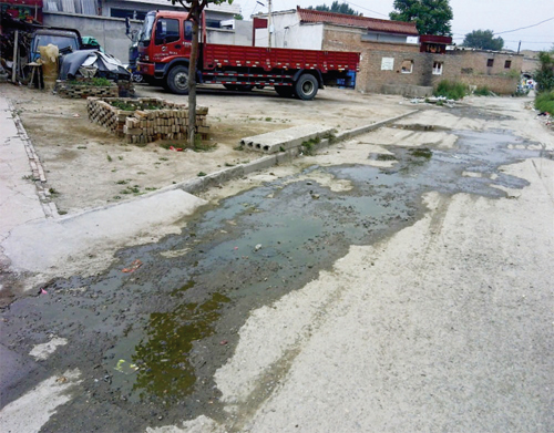 城區(qū)橋東街天宇涂料廠(chǎng)門(mén)口,污水橫流10 多天了,南街村有人將此修好,不到一個(gè)月,污水又開(kāi)始流出了,路面變成了綠色,氣味難聞。望相關(guān)部門(mén)督查治理。(一網(wǎng)友6月21日攝)