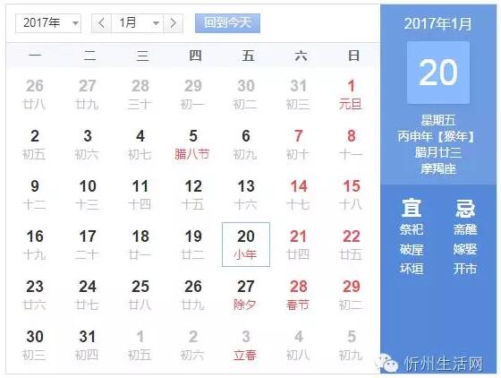 根據(jù)忻州教育網(wǎng)公布的忻州市中小學(xué)2016-2017校歷,稱2017年1月20日進入假期。真實放假時間以學(xué)校和教育局最新公布為準。