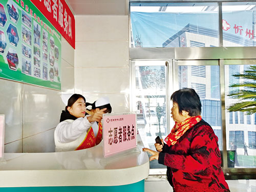 本報(bào)訊(實(shí)習(xí)記者 王菲)“大姐,您是哪里不舒服?”“我是來做檢查的,慢性病是在哪看呢?”“這個(gè)不在咱們這棟樓,我陪您過去吧。”在忻州市中心醫(yī)院的門診大廳,一位大姐看到大廳里人來人往,不知道該到幾樓找哪位醫(yī)生看病,志愿者見狀,快步走上前去,面帶微笑地與大姐打招呼,并很快帶著大姐去了就診區(qū)。