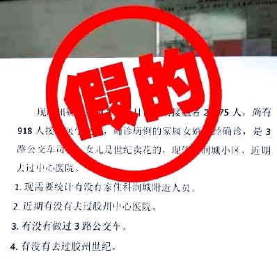 近日,有關(guān)青島新增兩名確診病例的信息在網(wǎng)上流傳,稱“膠州密切接觸者21375人,尚有918人接受醫(yī)學觀察”、“患者女婿是3路公交車司機!已經(jīng)確診了”等。