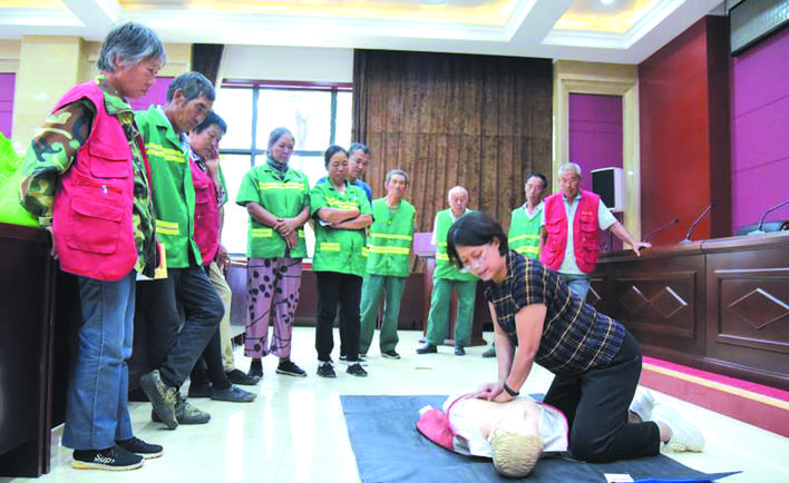 活動(dòng)中,醫(yī)護(hù)專(zhuān)家用通俗易懂的語(yǔ)言講解了自救互救知識(shí)和創(chuàng)傷救護(hù)基本技能,針對(duì)心臟驟停、氣道梗阻、頭部外傷、上肢骨折等生活中常見(jiàn)的突發(fā)事件進(jìn)行了現(xiàn)場(chǎng)演示。醫(yī)護(hù)人員提醒,在面對(duì)應(yīng)急救援時(shí)首先應(yīng)保持冷靜,并在確?,F(xiàn)場(chǎng)安全的情況下,再進(jìn)入現(xiàn)場(chǎng)展開(kāi)急救,其次要盡快確認(rèn)傷者和患者情況并盡快撥打急救電話(huà),尋求專(zhuān)業(yè)醫(yī)護(hù)人員幫助,及時(shí)對(duì)傷者進(jìn)行救護(hù)。演示結(jié)束后,進(jìn)入現(xiàn)場(chǎng)互動(dòng)環(huán)節(jié)。醫(yī)護(hù)專(zhuān)家手把手教學(xué),讓現(xiàn)場(chǎng)群眾親自感受心臟驟停后正確的救助方法。不少群眾表示,家里有老人、孩子,學(xué)習(xí)自救互救知識(shí)很重要。