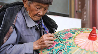 11月17日,非遺傳承人鄭映海在繪制油紙傘。 云南省騰沖市固東鎮(zhèn)滎陽村有著上百年制作油紙傘的歷史,但機(jī)制雨傘的出現(xiàn)和其價格優(yōu)勢,讓手工制作的油紙傘市場越來越小。近年來,隨著當(dāng)?shù)芈糜螛I(yè)的興起,樣式別致、圖案精美的油紙傘作為工藝品受到游客青睞,傳承百年的油紙傘煥發(fā)了新的生機(jī)。 新華社發(fā)(梁志強(qiáng) 攝)
