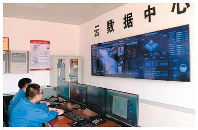 在屯蘭礦云數(shù)據(jù)中心,工作人員在實(shí)時(shí)監(jiān)控。