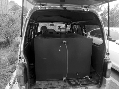 沒有牌照,車頂有監(jiān)控,從來不灑水。一臺灑水車,看似平平無奇,卻暗藏貓膩。8月10日傍晚,突擊執(zhí)法隊來到西環(huán)路上一個物流園區(qū)。在園區(qū)空地,一輛車進入眾人視野。該車車身有“灑水車”字樣,但車輛卻沒有牌照,車頂部還裝一個監(jiān)控攝像頭。在車窗的位置,留有一個手機號碼。執(zhí)法人員打開車底部柜子,發(fā)現(xiàn)這是一臺用灑水車偽裝的黑加油車。柜子里,加油表盤上面有每升汽油的價格,車輛啟動后,加油槍便可以正常給汽車加注汽油。執(zhí)法人員隨即進行了查處,查扣非法油品200升。黑加油車輛由公安交警部門查扣至指定停車場。目前,案件正在進一步調(diào)查處理中。